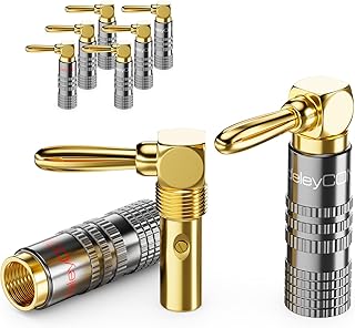 deleyCON Set of 8 Banana Plugs 90° Angled Gold-Plated Screw for Speaker Cable Box Cable 0.75 mm - 4.5 mm & e.g. HiFi Home Cinema Receiver |
