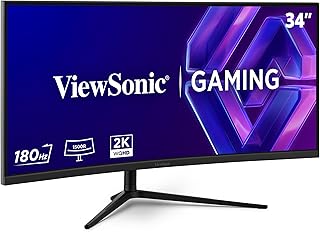 ViewSonic VX3418C-2K 34 inch UWQHD 1500R Curved Gaming Monitor, 180Hz, 1ms MPRT, AMD FreeSync Premium, HDMI, DisplayPort, Speakers |