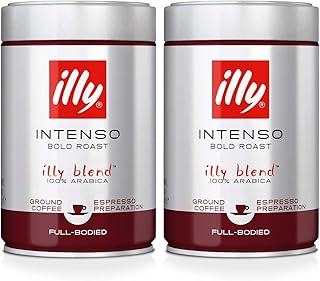 illy Intenso Espresso Dark Roast Ground Coffee, 250 g - Bold and Rich Italian Espresso Blend - 100% Arabica Beans - Perfectly Ground for Espresso Machines - Intense Flavor Profile (Pack of 2) |