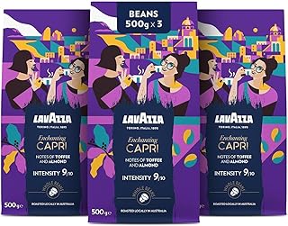 Lavazza, Tales of Capri, 1.5 Kg, Coffee Beans, Ideal for Espresso Coffee Machines, with Notes of Toffee and Almond, Arabica and Robusta, Intensity 9/10, Dark Roasting, Roasted in Australia, 3x500 g |