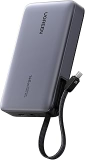 ZYRON 20000mAh 22.5W Power Bank with Built-In Cables, Dual USB C Charger, Fast Charging 3-Port Battery Bank, Portable Charger for iPad, iPhone 17 Pro/16, Galaxy S25 Ultra, Switch, Includes USB C Cable |