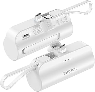Auskang 5000mAh Ultra Slim Power Bank with Built-in USB-C Cable, Mini Portable Charger, Travel Essential Battery Pack, Compatible with iPhone 17/16/15/Pro Max Samsung S25/S24 iPad Google Phone (Black) |
