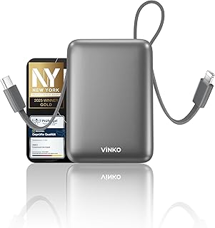 VINKO Power Bank 20000mAh, 22.5W Fast Charging USB C Portable Charger with Built in 2 Cables, LED Display Travel Essential Battery Pack, for iPhone 17 16 15 14 Samsung Galaxy S25 S23 iPad etc. (Gray) |