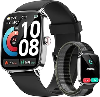 aeac Smart Watch for Men Women,1.85" HD 60fps Full Touch Screen Answer/Make Calls with Heart Rate/Sleep/SpO2 Monitor 100+ Sport Modes,IP68 Waterproof Fitness Watch (Black, 1.85) |