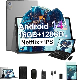 2025 Latest Tablet 10 Inch with Widevine L1, Android 14 Tablet, 20GB RAM + 128GB ROM (TF 1TB), Octa-Core 1.8GHz, WiFi 6, 6000mAh, Bluetooth 5.0, 1280 x 800, 8MP + 5MP, Tablet with Keyboard and Mouse, |