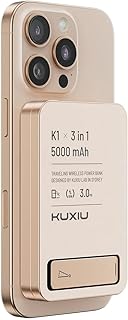 KU XIU K1 15W Fast Charging 3-in-1 Magnetic Wireless Power Bank 5000mAh, Portable Charger for iPhone, AirPods, Watch – Desert Titanium |