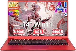 Ruzava Laptop 14 Inch FHD IPS Display, Win11, Celeron N5095 (up to 2.9 GHz) 8 GB RAM 256 GB SSD Support 1TB, 5G WiFi, USB 3.0, 5000 mAh, HDMl, Notebook PC QWERTY German Keyboard Film - Red Metal1 |