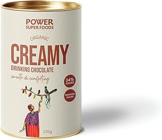 Power Super Foods CREAMY Organic Drinking Chocolate - dairy free, 34% cacao, low sugar, naturally sweet, 220g |