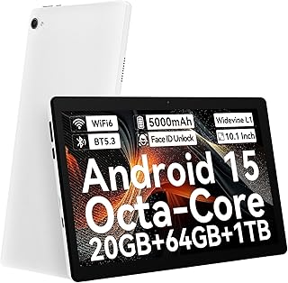 Gleeso Tablet, Android Tablet 10 Inch, 20GB+128GB+2TB, Android 15 Tablet with Octa-core, IPS HD Display, 5000mAh Battery, Fast Charging, Face ID, Dual Camera, Slim, Black |