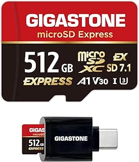 GIGASTONE 512GB microSD Express, MicroSDXC Express Memory Card SD 7.1 Speed up to R/W 880/650MB/s Compatible with Nintendo-Switch 2, Professional Camera, A1 V30 U3, with Adapter and Type C Card Reader |