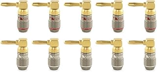 Nakamichi FanLock Excel Series 24k Gold Plated BFA Banana Plug 10 AWG - 18 AWG Gauge Size 4mm for Speakers Amplifier Hi-Fi Stereo Home Theatre Radio Audio Wire Cable Quick Connector, 20 Pcs (10-Pairs) |