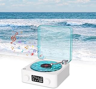 Waves Vinly Bluetooth Speaker, The Waves Vinly Player with Water Ripple Light, Retro Style Vinly Record Player, Aqua Speaker for Bedroom, Office, Party (White) |