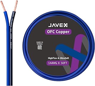 JAVEX 14-Gauge AWG Speaker Wire OFC Oxygen-Free Copper 99.9% Cable for Hi-Fi Systems, Mixer, Amplifiers, AV receivers, Home Theater, Subwoofer, and Car Audio System, 50 FT, Blue/Black |