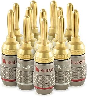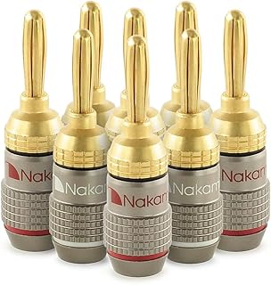Nakamichi Excel Series 24k Gold Plated Banana Plug 12-18 AWG Gauge Size 4mm for Speakers Amplifier Hi-Fi AV Receiver Stereo Home Theatre Radio Audio Wire Cable Connector, 8 Pcs (4-Pairs) |