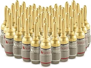 Nakamichi Excel Series 24k Gold Plated Banana Plug 12-18 AWG Gauge Size 4mm for Speakers Amplifier Hi-Fi AV Receiver Stereo Home Theatre Radio Audio Wire Cable Connector, 48 Pcs (24-Pairs) |