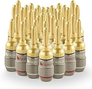 Nakamichi FanLock Excel Series 24k Gold Plated Banana Plug 10 AWG - 18 AWG Gauge Size 4mm for Speakers Amplifier Hi-Fi Stereo Home Theatre Radio Audio Wire Cable Quick Connector, 4 Pcs (2-Pairs) |