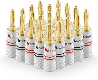 Nakamichi Excel Series 24k Gold Plated Banana Plug 12 AWG - 18 AWG Gauge Size 4mm Speakers Amplifier Hi-Fi AV Stereo Home Theatre Audio Wire Cable Screw Connector (20 Pcs (10-Pairs), BFA Plug) |
