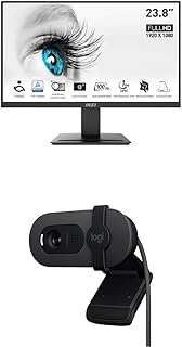 MSI PRO MP2412 23.8" Eye Care Ergonomic Business Computer Monitor & Logitech Brio 100 Full HD Webcam Bundle |