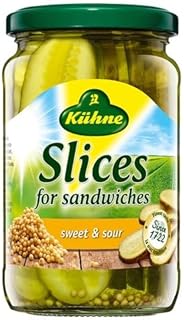 Kuhne Sweet and Sour Sandwich Pickle Slices, Glass Jar, 330ml, Perfect for Sandwiches |
