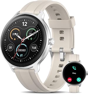 TOOBUR Smart Watch for Women, Smartwatch Compatible Android Phone and iOS Phone, Answer/Make Calls, Fitness Tracker Watch, Sleep Tracker/100 Sports/IP68 Waterproof, Beige |
