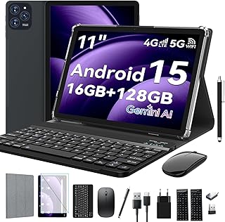 10 Inch Android 15 Tablet with Keyboard - 24GB (4+20) RAM + 128GB ROM (1TB Expandable), 2 in 1 Tablets with 8 Core Processor, 7200mAh, 5G WiFi, Widevine L1, GMS, with Case (No Charger) |