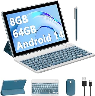 BYANDBY Android 14, 2 in 1 Tablet with Keyboard, 10 inch Tablets, 8GB+64GB/1TB Expand, 2.4G+5G+Wi-Fi 6, Dual Camera, 6000 mAh, BT, GMS, Games, with Case (Green) |