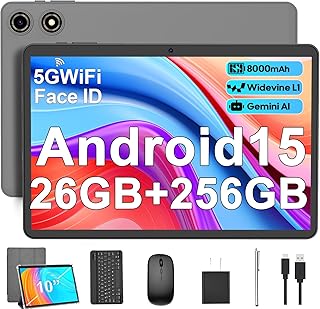 2026 Latest Tablet 10 Inch Octa-Core Gemini AI, 22 GB RAM + 128 GB ROM (TF 2 TB), 8000 mAh丨Widevine L1丨GMS丨5G WLAN 6丨5MP + 8MP丨Bluetooth 5.0丨1280 x 800丨Metal Cover Tablet with Keyboard Mouse Black |