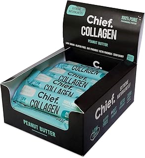 CHIEF Collagen Protein Bar Low Calorie - Peanut Butter Bulk 12 Pack - Nutritional Protein Bars Low Carb - Whey Protein Isolate Healthy Snacks - Keto Snacks Zero Carb No Sugar - Gluten Free Snacks |