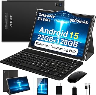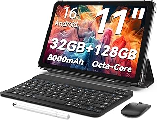 Android 16 tablet, 11 inch tablet, 32GB + 128GB, expandable to 1TB, productivity bundle with keyboard case, stylus, octa-core processor, dual camera, wifi 6, 8000mAh battery (Nero) |
