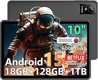 Tablet 10 inch Android 15 Tablets, 18GB RAM 128GB ROM 1TB Expand, Octa-Core Processor, 1280x800 IPS Widevine L1, WiFi 6, 8MP+5MP Dual Camera, BT5.4, 6000mAh, GPS, Type-C Fast Charging |
