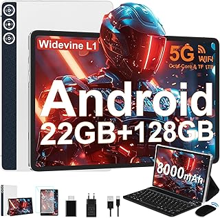 Android 14 Tablet with 22GB RAM + 128GB ROM (1TB TF), Tablet 10 Inch with Widevine L1, Octa-Core 2.0GHz, 5G WiFi, GPS, 8000mAh, 8MP + 5MP, Bluetooth 5.0, USB-C, with Keyboard, Silver |