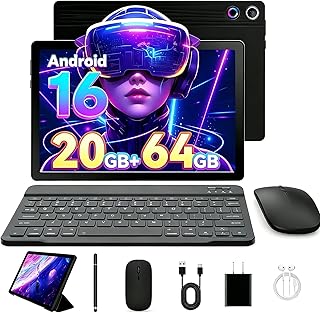 Latest 2026 Upgraded Android 16 Tablet 10.1 Inch with IPS HD Touch Screen, Dual Camera, 64GB Storage 1TB Expansion, 8 in 1 Tablets Kit with Keyboard, Protective Case, Mouse, Stylus, BT 5.4, WiFi 6 |